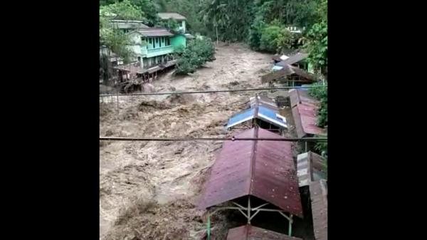 Dalam video tersebut sebelum kejadian, terlihat air yang berwarna keruh membawa material kayu.