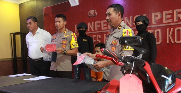 “Saat ini tersangka berikut barang bukti berupa 1 (satu) buah HP merk Asus Zenfone warna hitam, 1 (satu) unit sepeda motor Honda Vario warna merah tahun 2018 Nopol S-5500-RR (sarana pelaku) dan uang tunai Rp 835.000,- diamankan di Mapolres guna dilakukan proses penyidikan,” ungkap Kapolres.