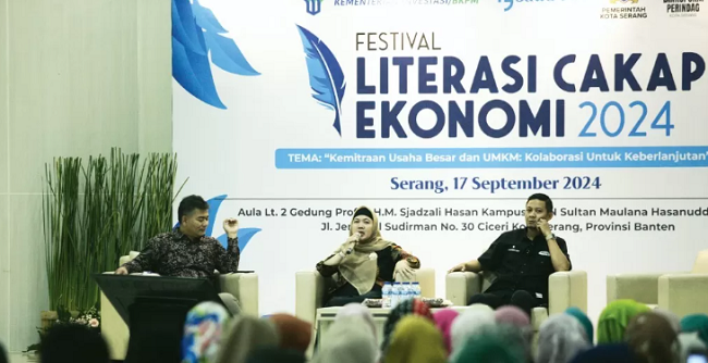 Serang, Teritorial.com – Kementerian Investasi/BKPM bersama Jawa Pos Media dan Pemerintah Kota Serang menggelar Festival Literasi Cakap Ekonomi 2024 di Aula Lt 2 Gedung Prof KH M. Sjadzali Hasan, Kampus 1 UIN Sultan Maulana Hasanuddin Banten, Selasa (17/9).