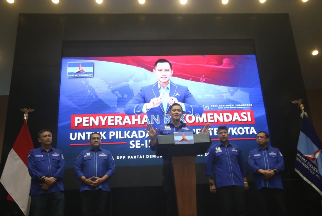 Ketua Umum Partai Demokrat Agus Harimurti Yudhoyono menyerahkan surat rekomendasi bakal calon kepala daerah di Kantor DPP Partai Demokrat, Jakarta, Jumat (23/8/2024). Partai Demokrat menyerahkan 116 surat rekomendasi untuk bakal calon kepala daerah yang akan turut serta dalam Pilkada serentak 2024.Ketua Umum Partai Demokrat Agus Harimurti Yudhoyono menyerahkan surat rekomendasi bakal calon kepala daerah di Kantor DPP Partai Demokrat, Jakarta, Jumat (23/8/2024). Partai Demokrat menyerahkan 116 surat rekomendasi untuk bakal calon kepala daerah yang akan turut serta dalam Pilkada serentak 2024.Ketua Umum Partai Demokrat Agus Harimurti Yudhoyono menyampaikan pidato sambutan sebelum menyerahkan surat rekomendasi bakal calon kepala daerah di Kantor DPP Partai Demokrat, Jakarta, Jumat (23/8/2024). Partai Demokrat menyerahkan 116 surat rekomendasi untuk bakal calon kepala daerah yang akan turut serta dalam Pilkada serentak 2024.Ketua Umum Partai Demokrat Agus Harimurti Yudhoyono menyampaikan pidato sambutan sebelum menyerahkan surat rekomendasi bakal calon kepala daerah di Kantor DPP Partai Demokrat, Jakarta, Jumat (23/8/2024). Partai Demokrat menyerahkan 116 surat rekomendasi untuk bakal calon kepala daerah yang akan turut serta dalam Pilkada serentak 2024.