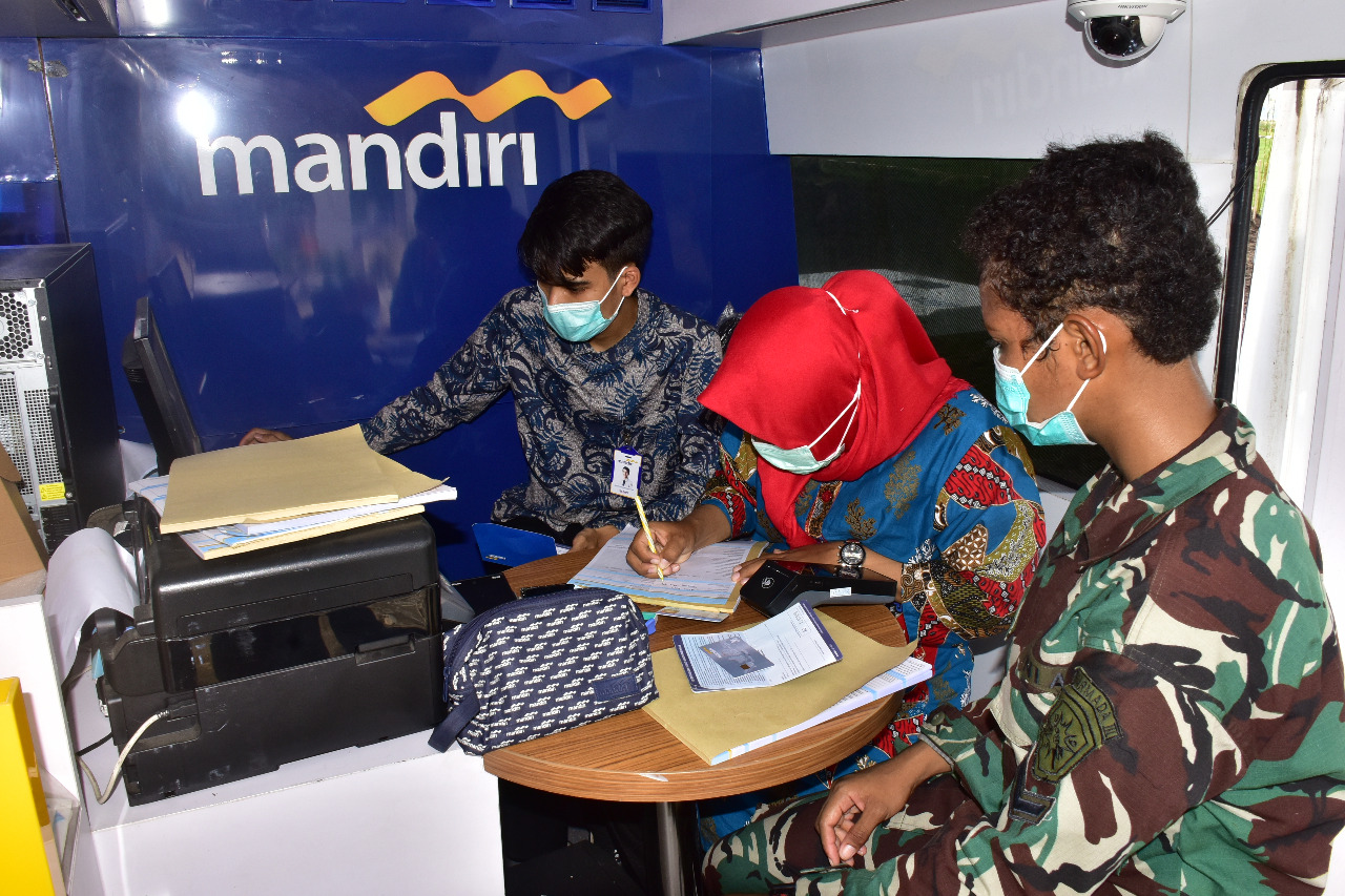 Pada kesempatan ini, para Bintara dan Tamtama Remaja TNI AL diberikan kesempatan mengurus registrasi dan aktivasi mobile banking.