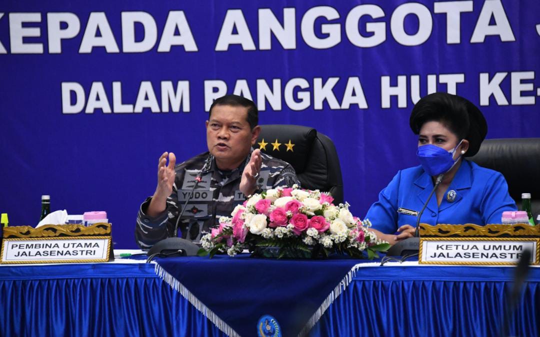 JAKARTA, Teritorial.com – Anggota Jalasenastri harus dapat mendukung dan mendorong semangat suami dalam bertugas dan sebagai seorang istri, anggota Jalasenastri agar semaksimal mungkin mendampingi suami di tempat kedinasan. Demikian disampaikan Kepala Staf Angkatan Laut (KSAL) Laksamana TNI Yudo Margono, S.E., M.M., selaku Pembina Utama Jalasenastri didampingi Ketua Umum Jalasenastri Ny. Vero Yudo Margono, pada kegiatan tatap muka secara virtual dengan Ibu-ibu Jalasenastri se-Indonesia dalam rangka memperingati HUT Jalasenastri ke-75, bertempat di Gedung Auditorium Denma Mabesal, Cilangkap Jakarta Timur, Jumat, (13/8).