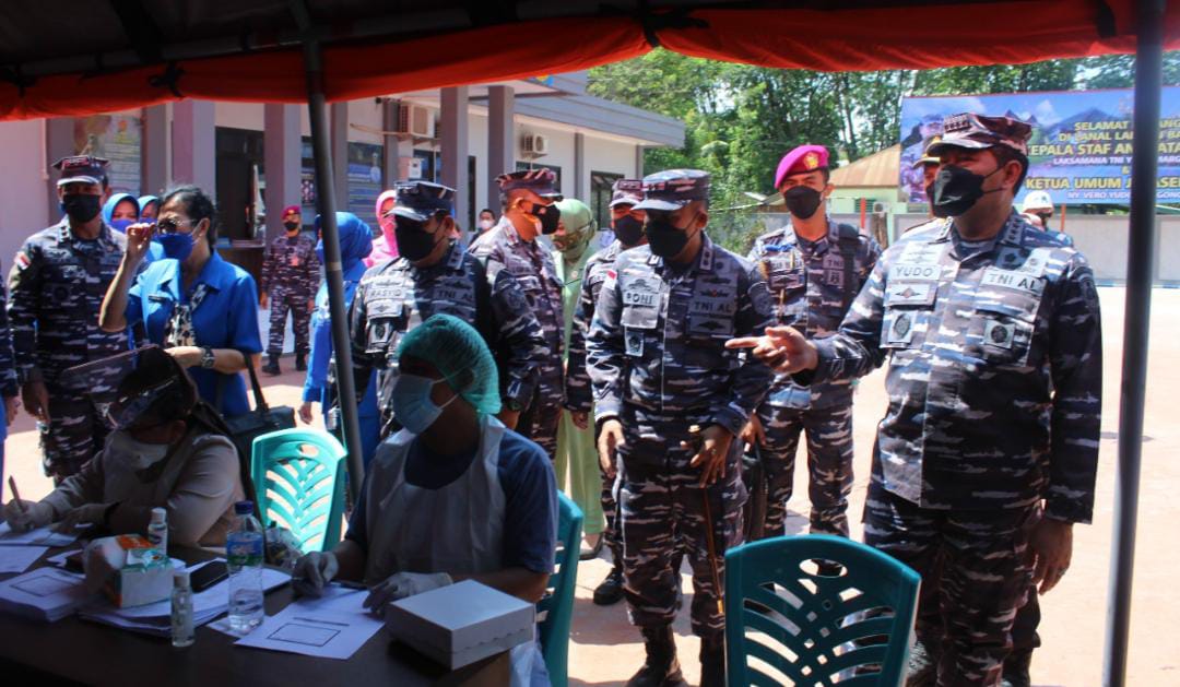 LABUAN BAJO, Teritorial.com – Masyarakat Labuan Bajo menyambut gembira serbuan vaksinasi yang dilaksanakan oleh TNI Angkatan Laut (TNI AL) yang ditinjau langsung Kepala Staf Angkatan Laut (KSAL) Laksamana TNI Yudo Margono, S.E., M.M., didampingi Ketua Umum Jalasenastri Vero Yudo Margono, bertempat di Markas Komando (Mako) Pangkalan TNI AL (Lanal) Labuan Bajo, Kabupaten Manggarai Barat, Nusa Tenggara Timur, Selasa, (14/9).