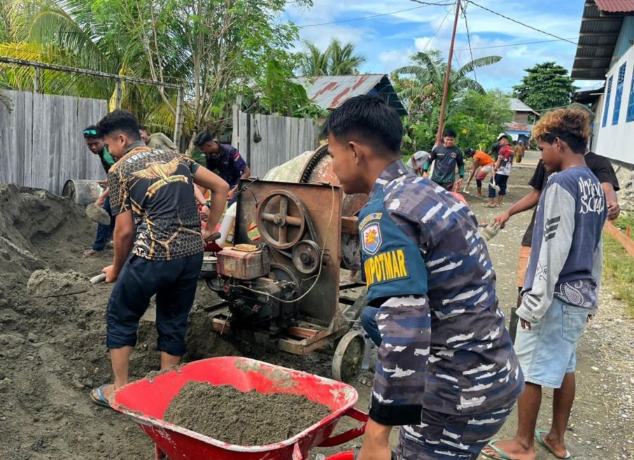 TNI AL dan Masyarakat Gotong Royong Bangun Akses Jalan di Nabire