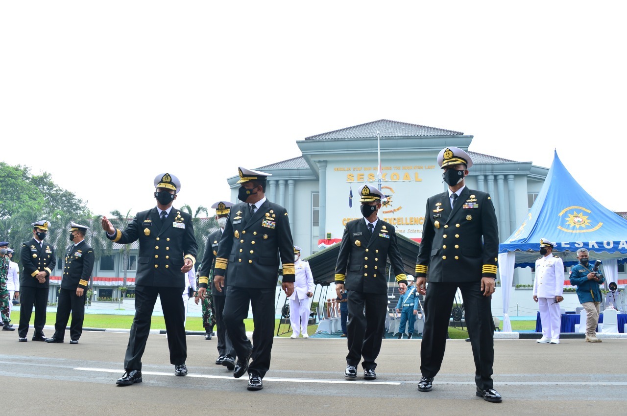 JAKARTA, Teritorial.com – Wakil Kepala Staf Angkatan Laut Laksamana Madya TNI Ahmadi Heri Purwono. S.E. M.M. Didampingi Komandan Seskoal Laksamana Muda TNI Tunggul Suropati, S.E., M.Tr(Han). Menutup Kegiatan The 4th International Maritime Security Symposium (IMSS) Tahun 2021, Bertempat di Auditorium Yos Sudarso, Seskoal, Cipulir, Jakarta Selatan, Selasa 24 Agustus 2021.